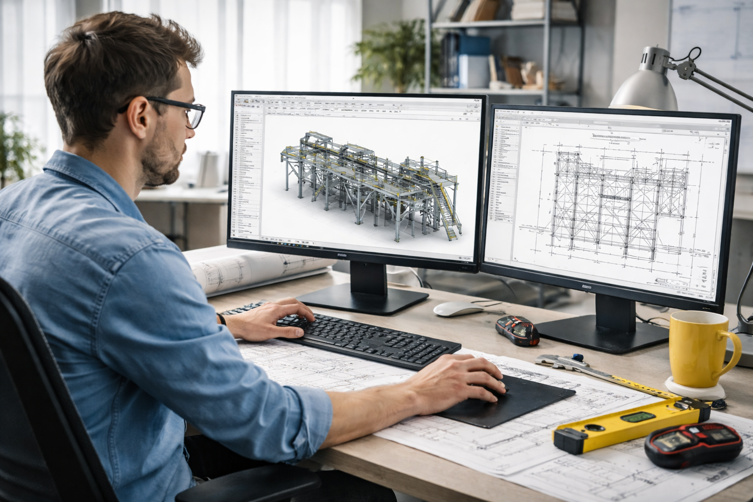 Dankzij mijn ervaring in zowel industriële als kleinschalige projecten kan ik vlot schakelen tussen conceptfase, detailontwerp en productietekeningen.